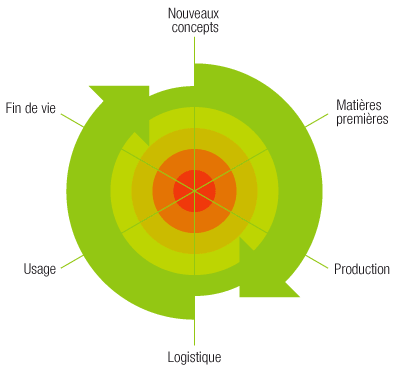 L'éco-conception exige de la rigueur. Parallèlement aux actions d'informations à mener et des messages clés à communiquer avec sérieux et séduction, il est nécessaire de déterminer, dès l'amont, les axes d'amélioration qui vont intervenir tout au long du cycle de vie des produits (extraction de matières premières, production, distribution, utilisation, élimination ou recyclage) de façon à réduire l'impact sur l'environnement (eau, sol, air, bruits, déchets, ressources naturelles, énergie).